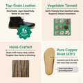 For the sole of our shoes, we use natural buffalo leather, which is renowned for its strength and resilience. This unique choice of material not only ensures long-lasting durability but also promotes a grounding effect. We enhance the conductivity by incorporating a copper rivet at the base, amplifying the flow of electrical energy.