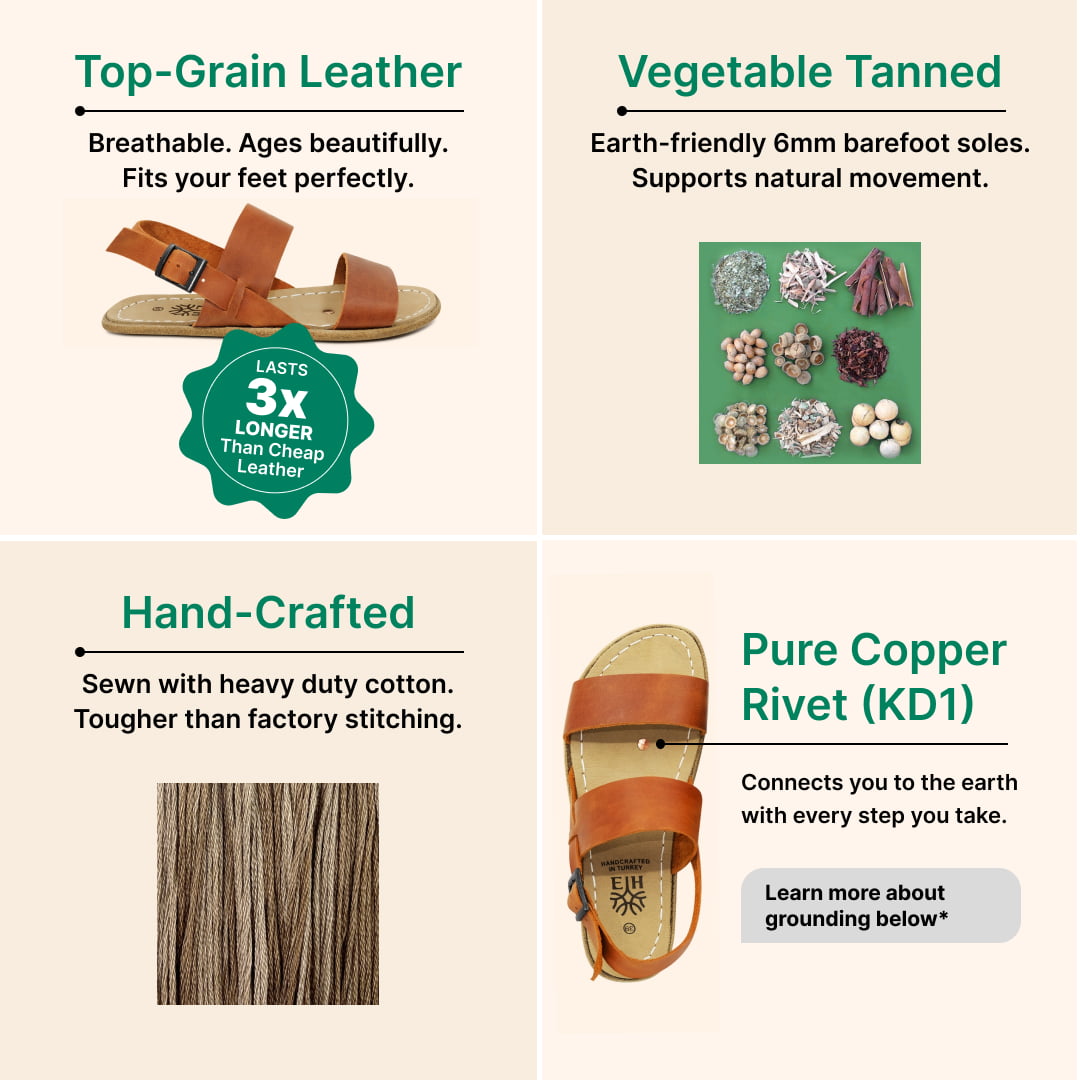 - Grounding Benefits: Our Earthing shoes, incorporate conductive materials like copper rivets and natural leather, enabling a connection to the Earth's energy. This grounding effect has been linked to potential health benefits, such as reduced inflammation, improved sleep, and increased overall well-being.