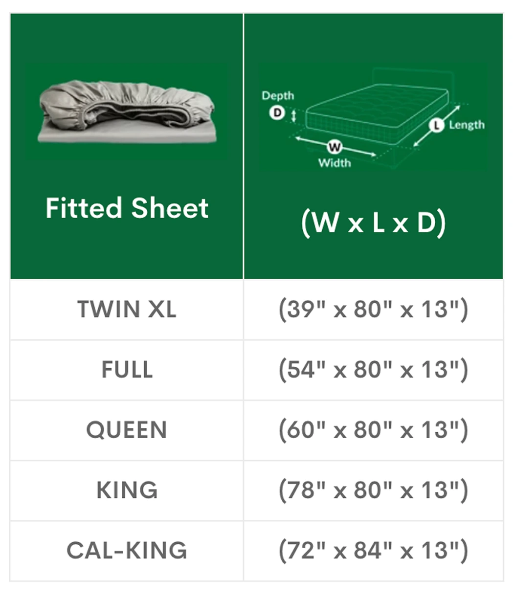The depth of our fitted sheets is 13", which covers a wide percentage of commonly found mattresses. This ensures that the sheet stays in place throughout the night and provides consistent grounding benefits.