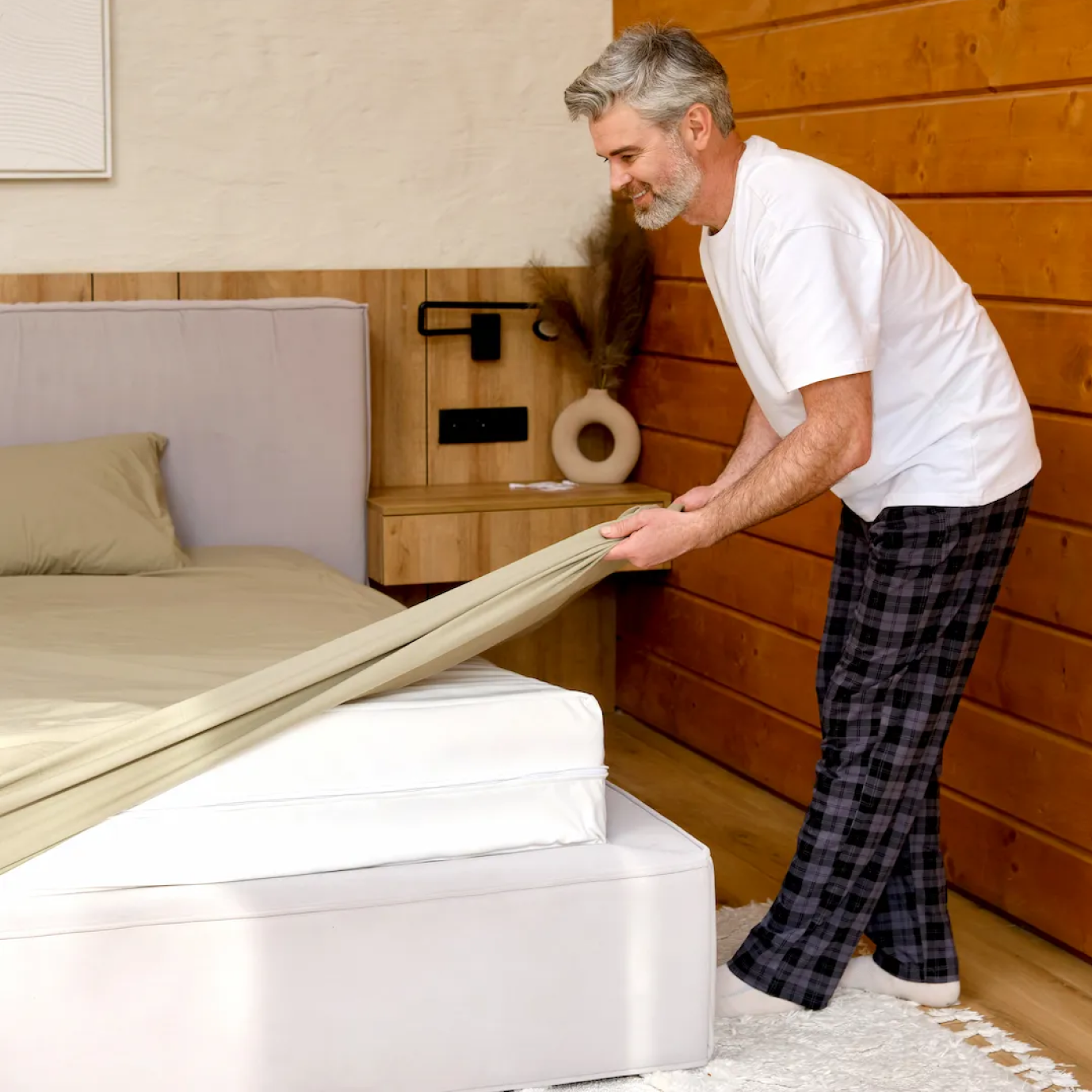 Alternatively, we have a solution that may meet your needs. We offer a complete flat sheet without the corner-hugging features found in our fitted sheets. Although this option is not currently listed on our website, it is available for purchase at the same price as our fitted sheet sizes. The flat sheet provides ample fabric to accommodate the depth of your mattress. We recommend selecting a size larger than your mattress dimensions to ensure generous coverage.